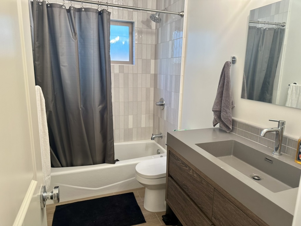 The Family Favorite. Walk to the beach from this one level two-BD, two-BA newly remodeled residence was once a single family home – no neighbors above or to either side. Gourmet kitchen, tile floors and showers, in-unit laundry plus garage and driveway parking for up to 4 cars. It includes a front yard and access to the shared roof deck.