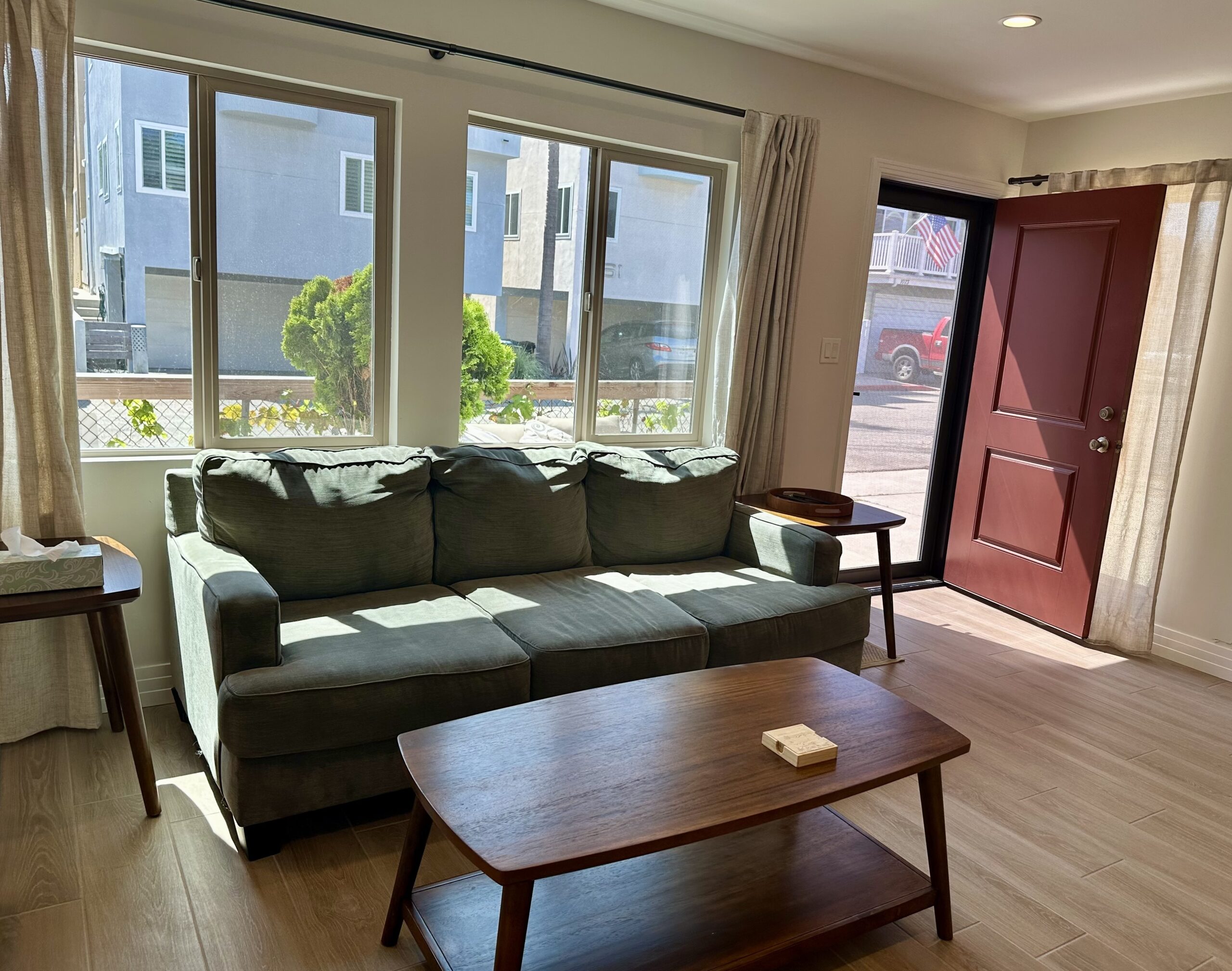 The Family Favorite. Walk to the beach from this one level two-BD, two-BA newly remodeled residence was once a single family home – no neighbors above or to either side. Gourmet kitchen, tile floors and showers, in-unit laundry plus garage and driveway parking for up to 4 cars. It includes a front yard and access to the shared roof deck.